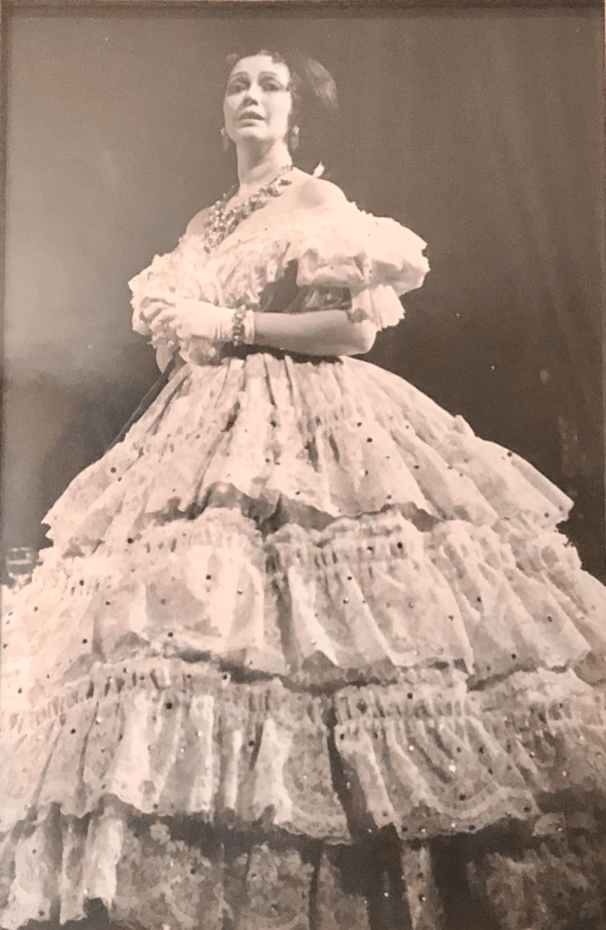 Some years ago I unearthed an image of Jean perched in a mountainous haystack on the family farm. Her mother had captured the moment with an old Brownie camera which is still in the family’s possession (see below). This childhood photo somehow put me in mind of a professional shot taken years later ~ Lois Jeanette McDonall as Violetta in Guiseppe Verdi’s dramatic opera, La Traviata.