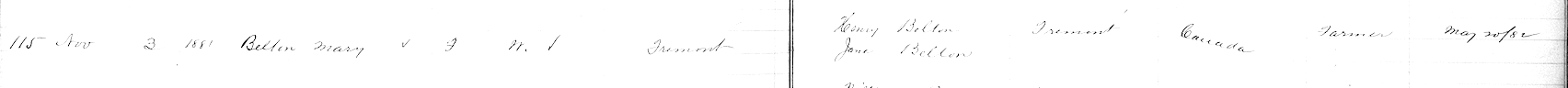 Birth record for Mary Belton, 3 November 1881, Fremont, Newaygo, Michigan