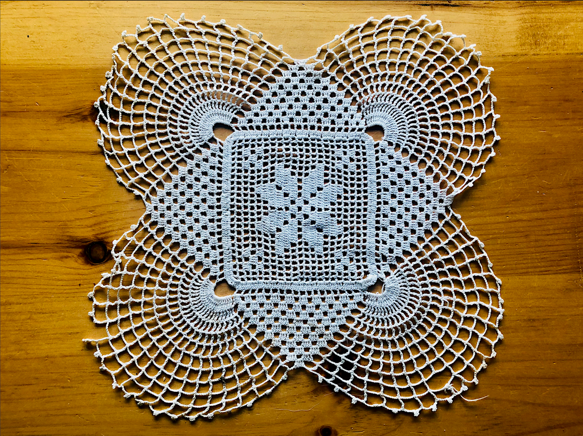 Great granny Gordon was known for her tatting and crochet work. These doilies, two of them starched, were created by her pre 1959 Source: Family Archives