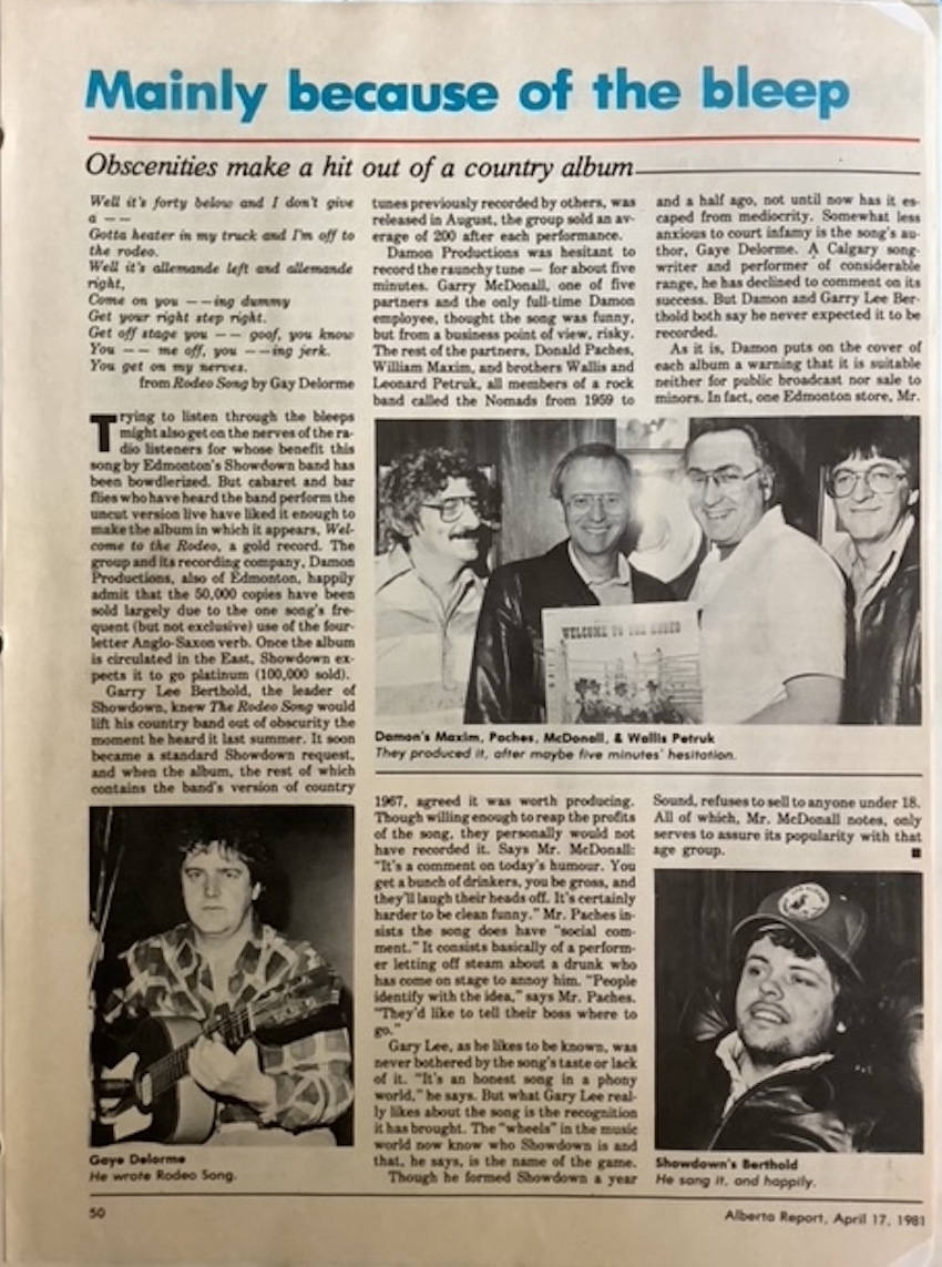“My Dad’s big claim to fame was recording and publishing the infamous “Rodeo Song” which was an expletive filled … country tune … . It ended up going double platinum, and made them a lot of money.