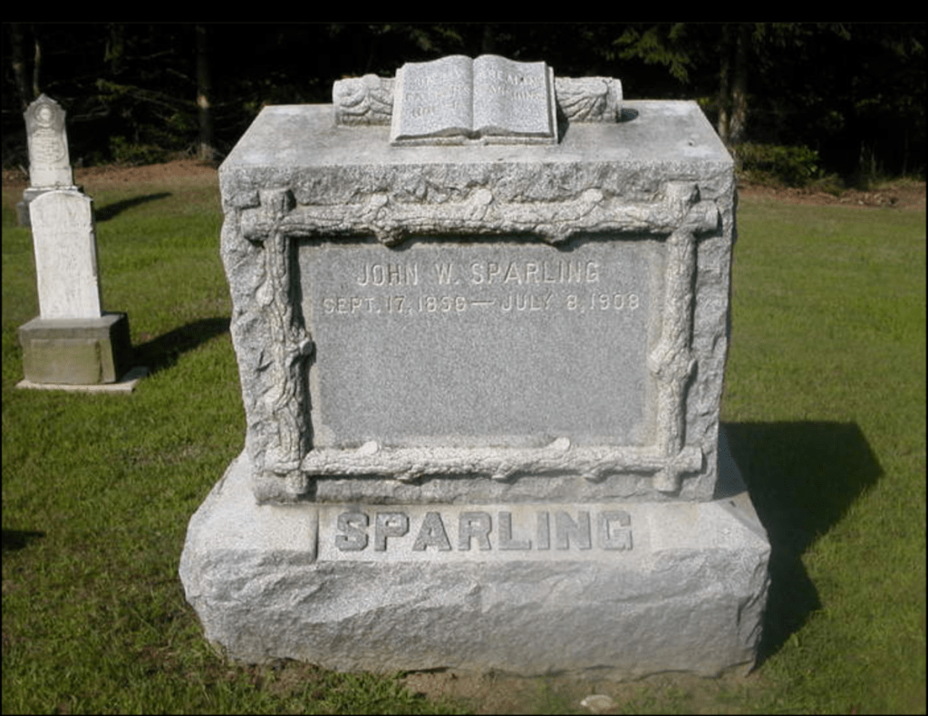 This grave stone marks the Sparling family plot where John and four of his sons ~ Peter (1885-1910), Albert (1887-1911), Scyrel (1891-1911), and Edward (1893-1894) are buried. John’s wife, Carrie (Boddy) Sparling (1864-1933) does not lie here (for reasons we’ll attempt to shed some light on next post), but is supposedly somewhere in the Tyre Cemetery though there is no record of her burial. John’s daughter, Mary Anna Stasia “May” (Sparling) Hurford (1883-1974), and a fifth son, Raymond (1890-1971) are interred elsewhere in Michigan.